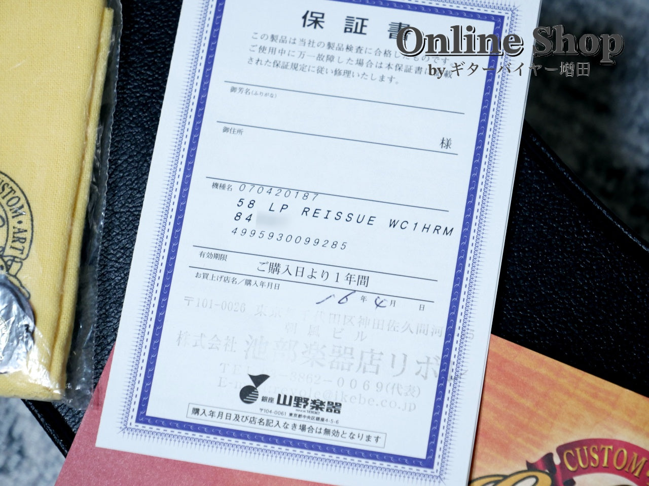 ハードケース、認定証、当時の保証書、ピック、クロス