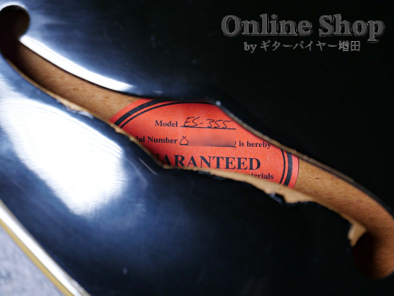 ギブソン・セミアコースティックの上位モデルであり、ブルーズやロックのアイコン的なギターの一つES-355!ビグスビー搭載のエボニー・カラー、エボニー指板のカスタムショップ・メンフィス製造一品です。