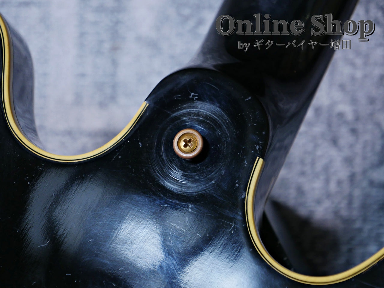 6弦側Fホール部分の塗装剥がれや、使用に伴う擦り傷や打痕、金属パーツの経年変化など見受けられますが、もちろんプレイアビリティは非常に良好で幅広いジャンルでの活躍が期待できる一品です。