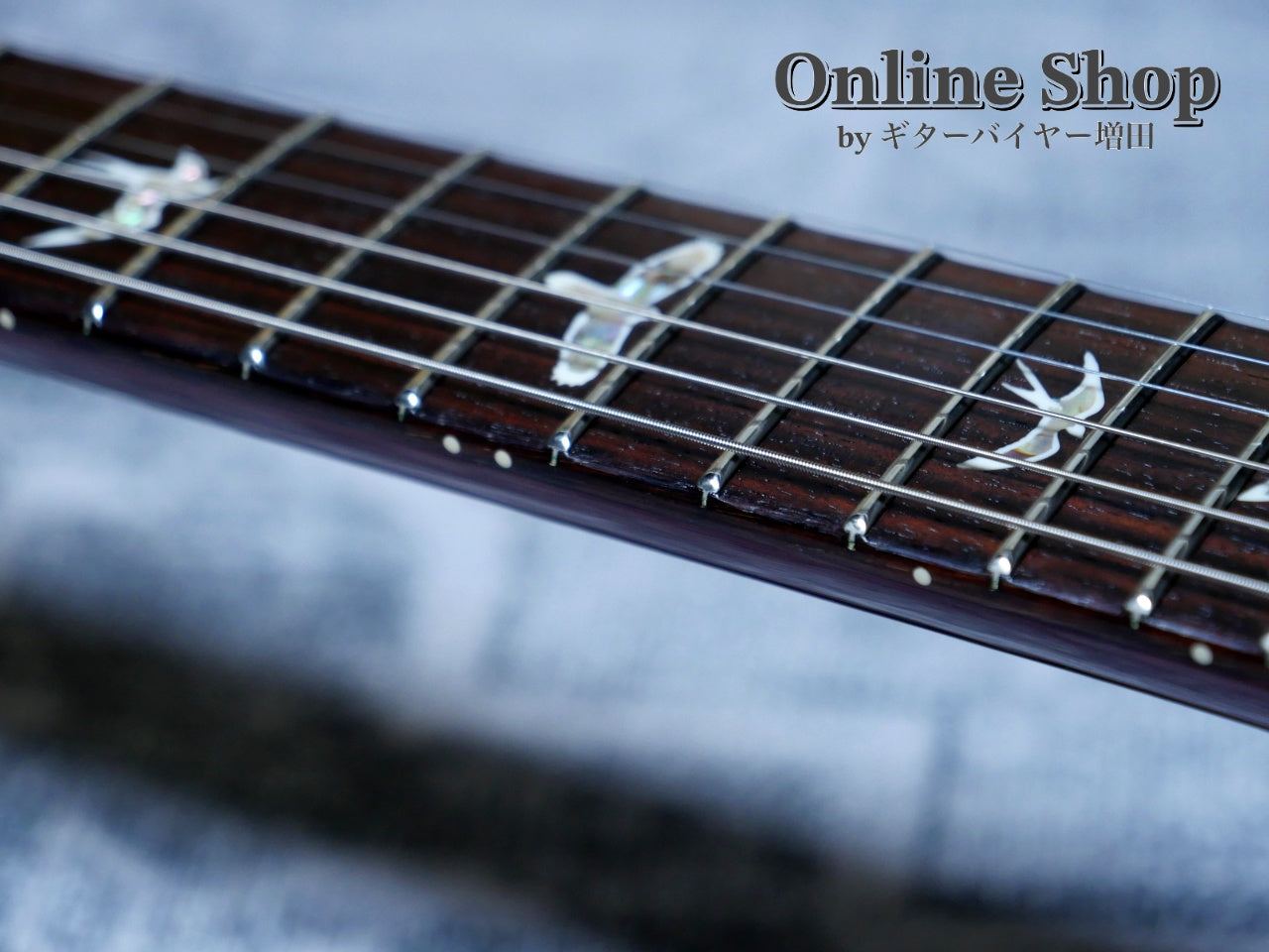 美しいフィガード・メイプルトップにマホガニー・バック、指板はローズウッドでネックはマホガニー。ネックシェイプは"パターン・レギュラー"でクセのないCシェイプ、フレットはミディアムサイズで快適な演奏性。