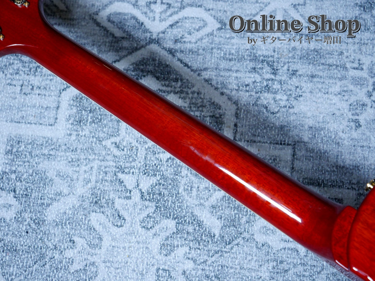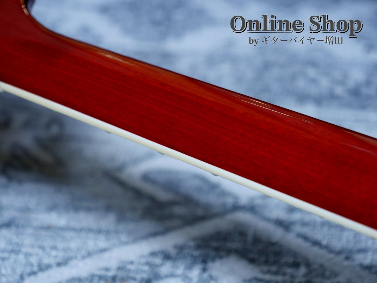 美しいフィガード・メイプルトップにマホガニー・バック、指板はローズウッドでネックはマホガニー。ネックシェイプは"パターン・ヴィンテージ"でやや厚みのあるCシェイプ、フレットはミディアムサイズで快適な演奏性。