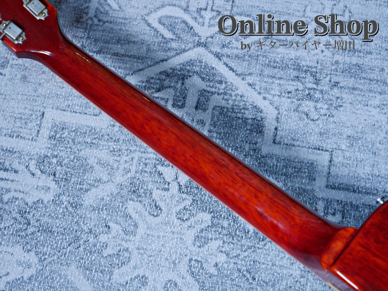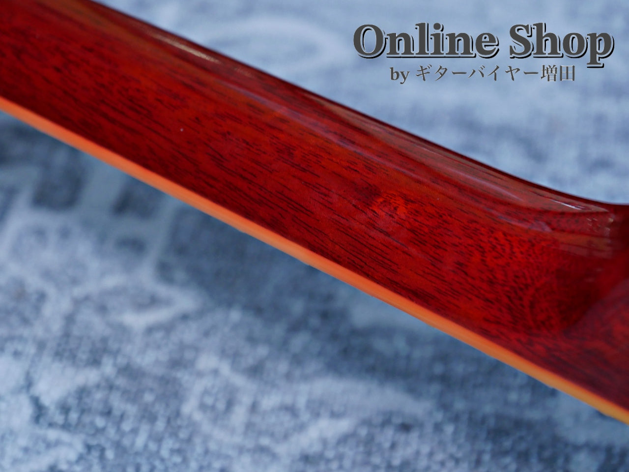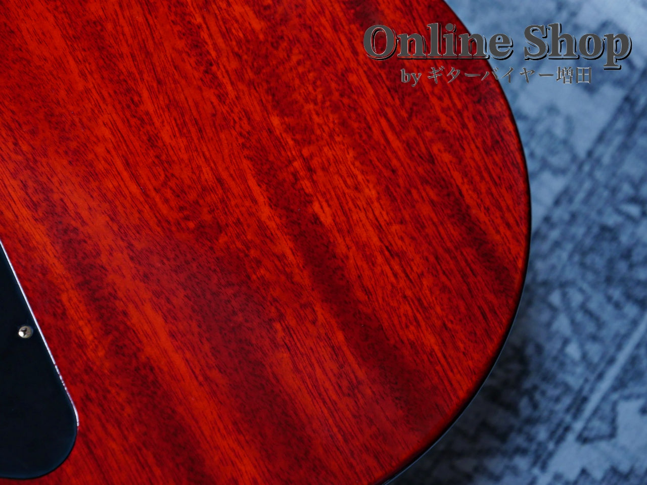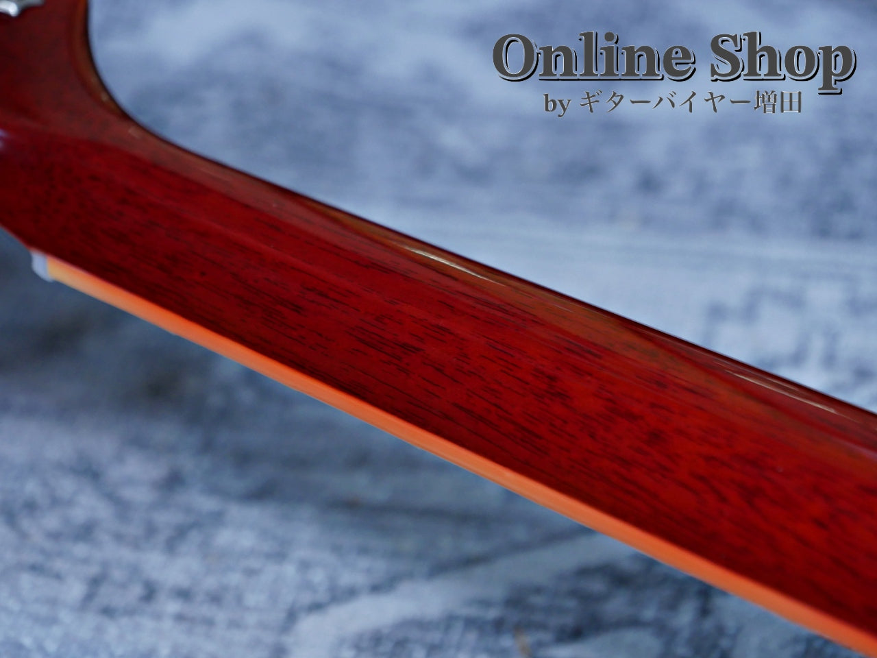 ネックは程よい厚みのC〜ほんのりVを感じる'59シェイプで快適な演奏性。ピックアップはカスタムバッカーアンポッテドで非常にレスポンスよくワイド・レンジなトーン。ハイド・グルー(にかわ)接着やチューブレス・トラスロッド、プラスティック・パーツのディティールやLuxe製バンブルビー・レプリカコンデンサーとヴィンテージのカーブを再現したヴィンテージ・オーディオ・テーパーポット・・・上げ切れない程のこだわりで、当時のフィーリングを再現しています。