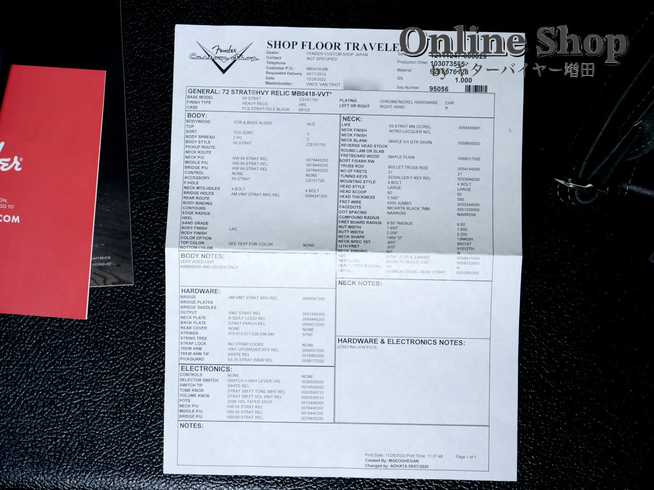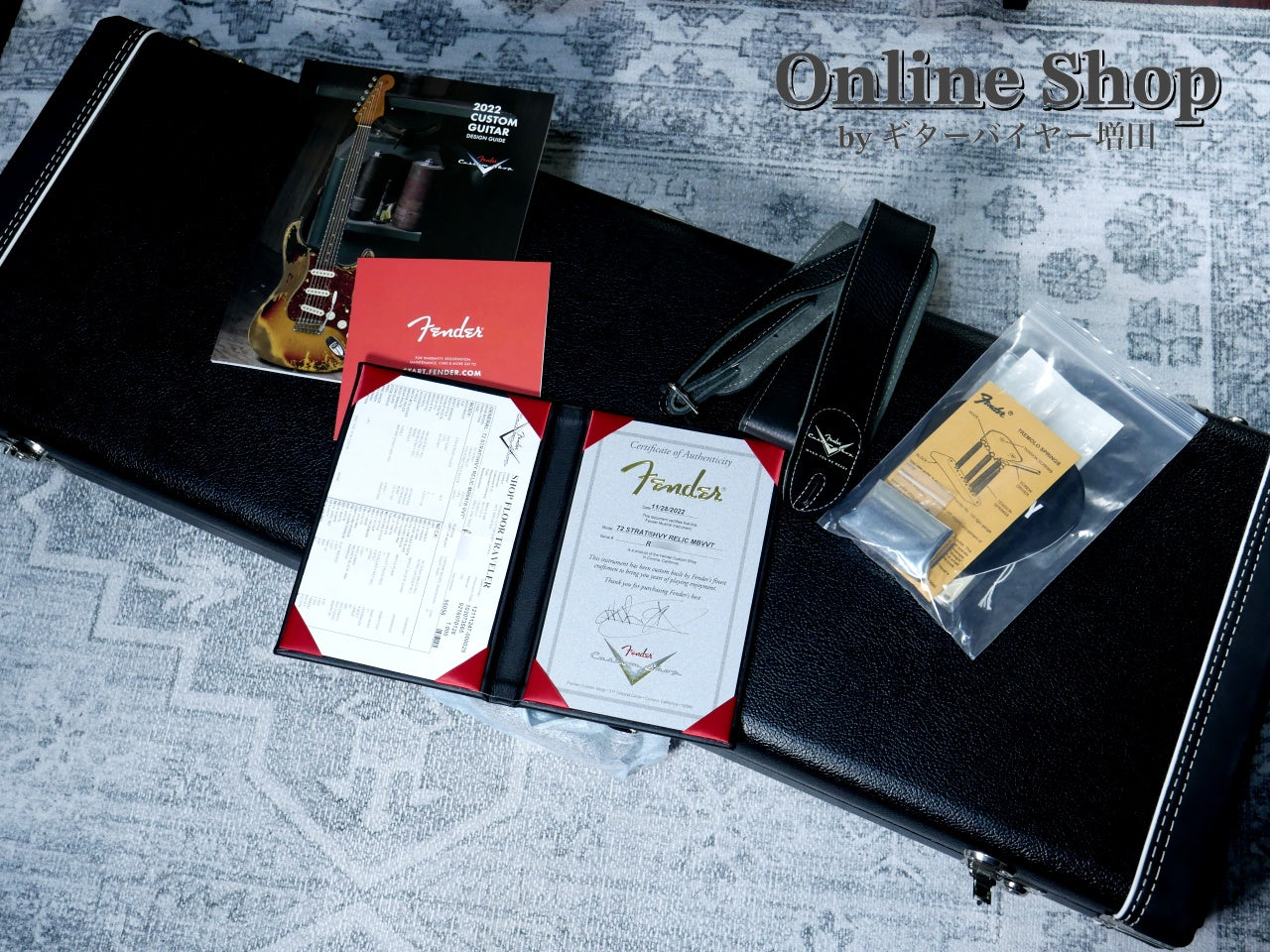 グレッチ・カスタム・ショップのマスター・ビルダーステファン・スターン氏の元でその技術を高め、直近はマスター・ビルダーとして絶大な支持を得たジョン・クルーズ氏の愛弟子としてそのバックオーダーの多くを引き継いだビルダー、ヴィンセント・ヴァン・トライグ氏による貫禄のラージヘッド・ストラト!!
