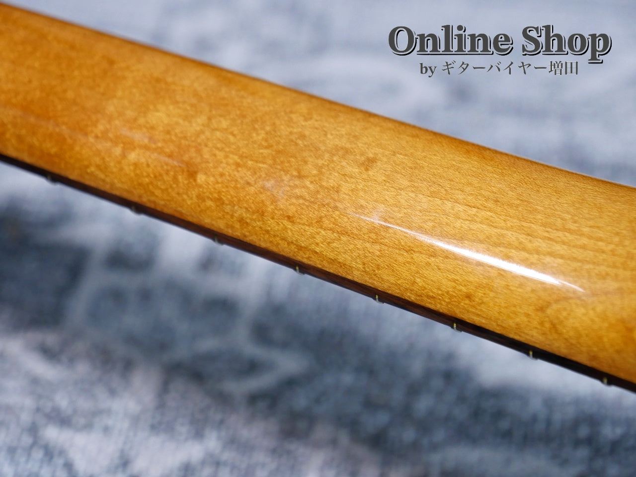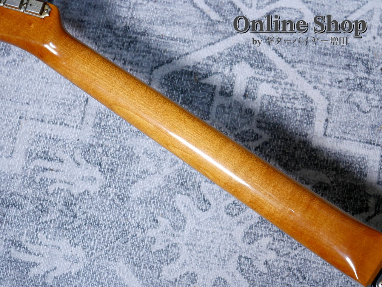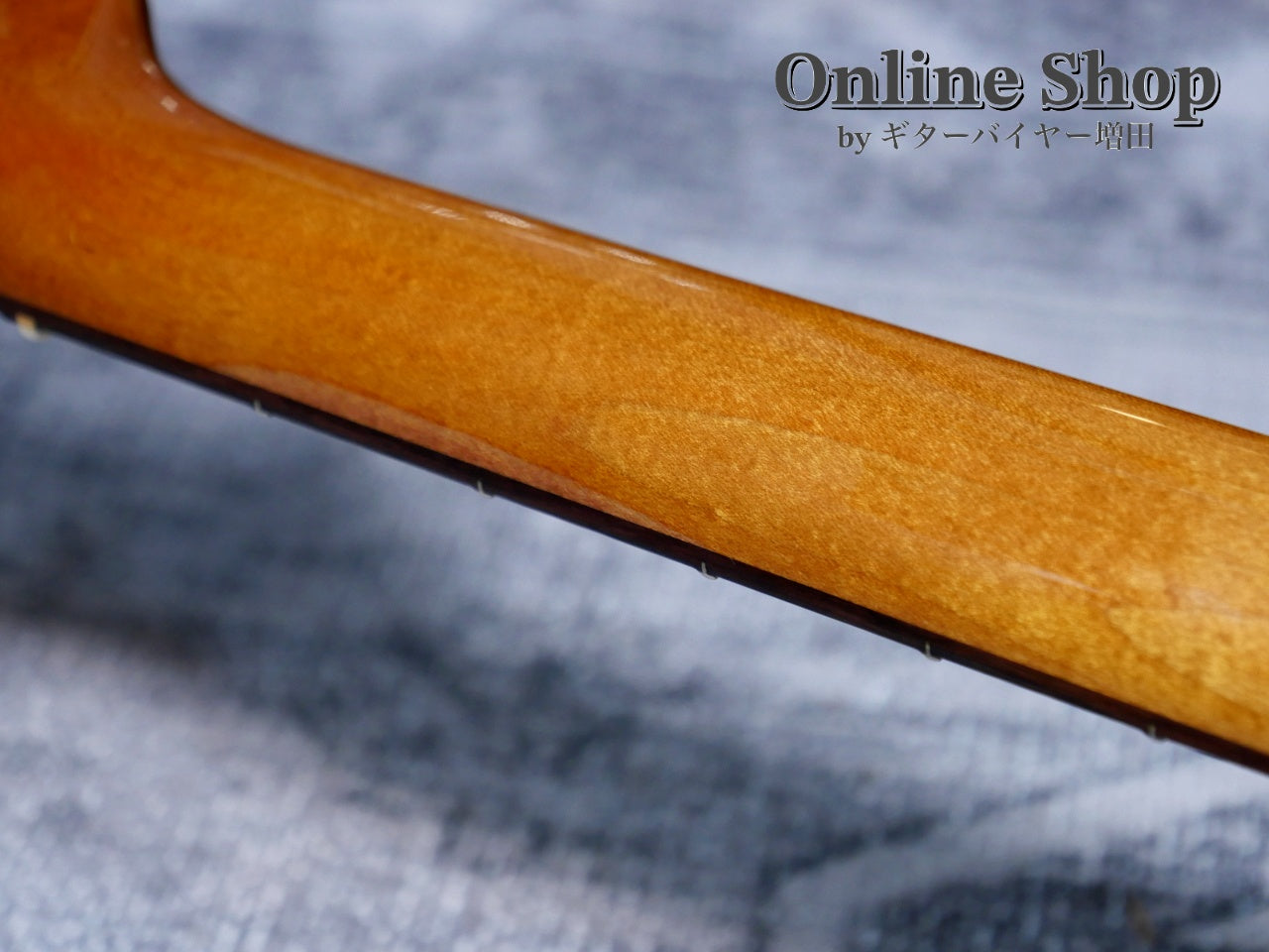 ネックは柾目取りのローステッド・メイプル、指板はスラブのローズウッド。非常に軽量なボディはローステッド・パウロニア(桐)を採用。木目がはっきりと確認できるほど薄い"シン・スキン"塗装のジャーニーマン・レリック仕上げで非常に雰囲気も良い一品です。