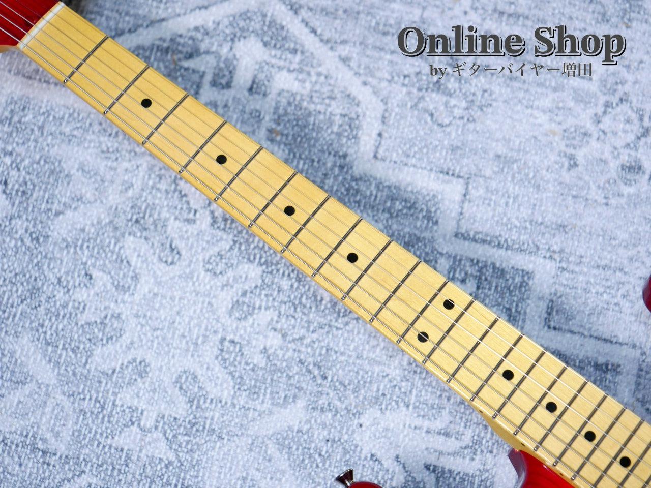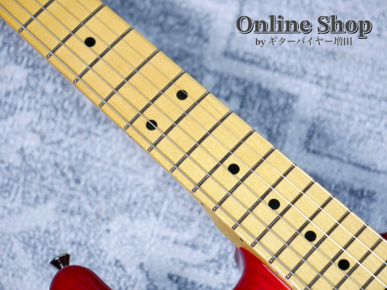 ワンピース・メイプルネック、アッシュ・ボディで鮮やかなチェリー・サンバーストの極薄ラッカー仕上げ。マッチング・ヘッドや22フレット、ブラックのピックガードがモダンで端正な印象です。
