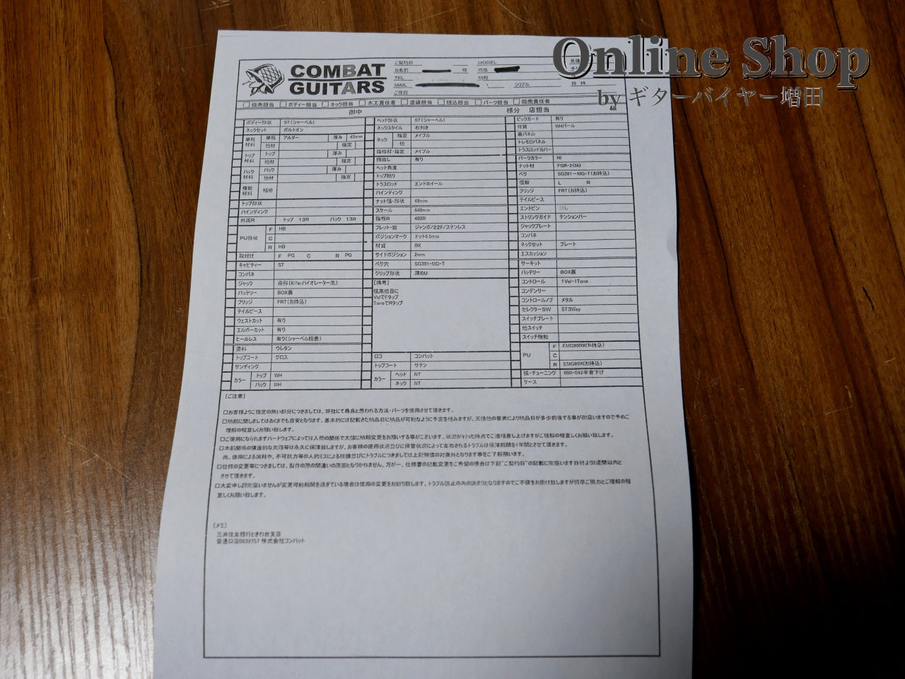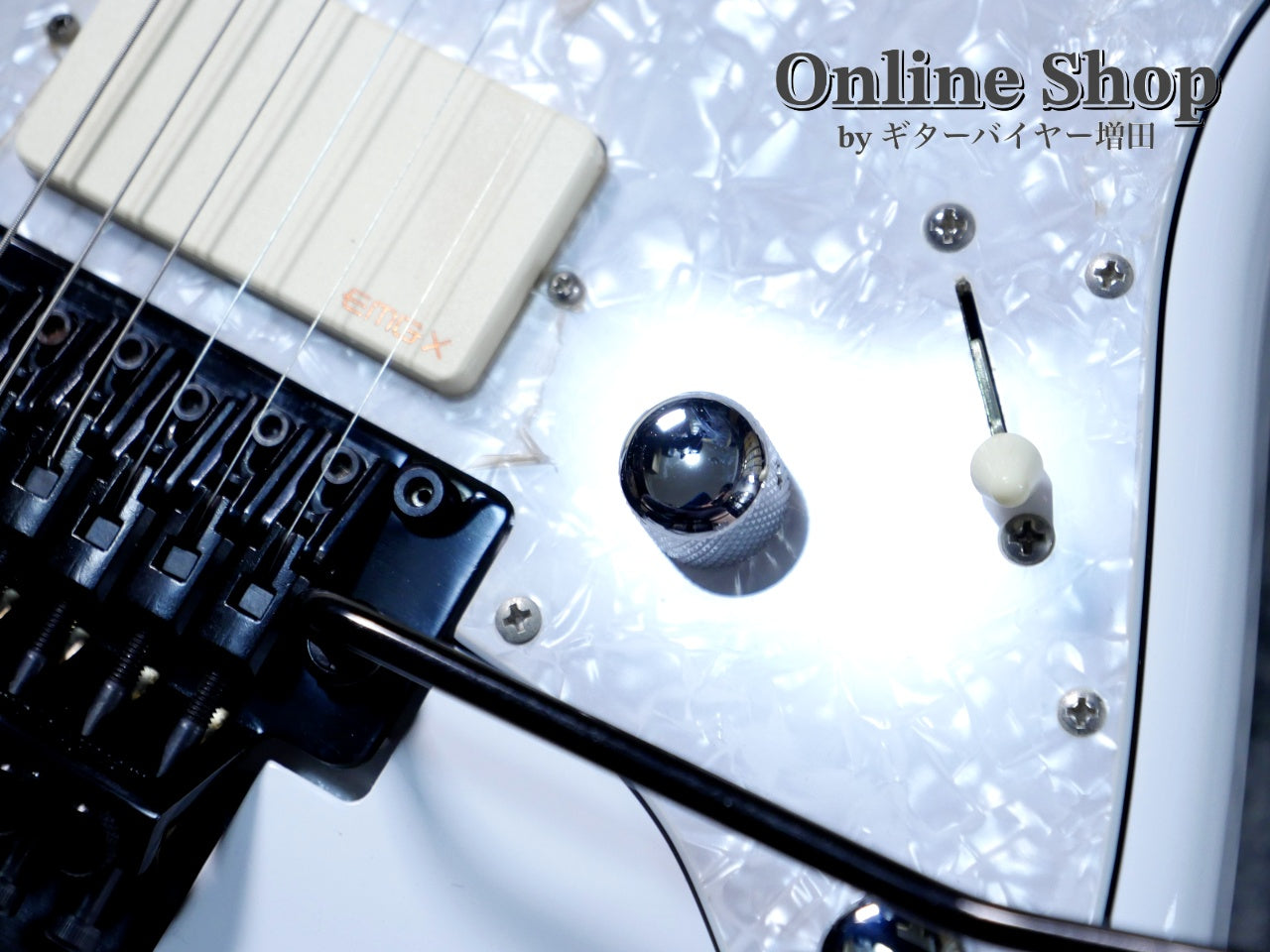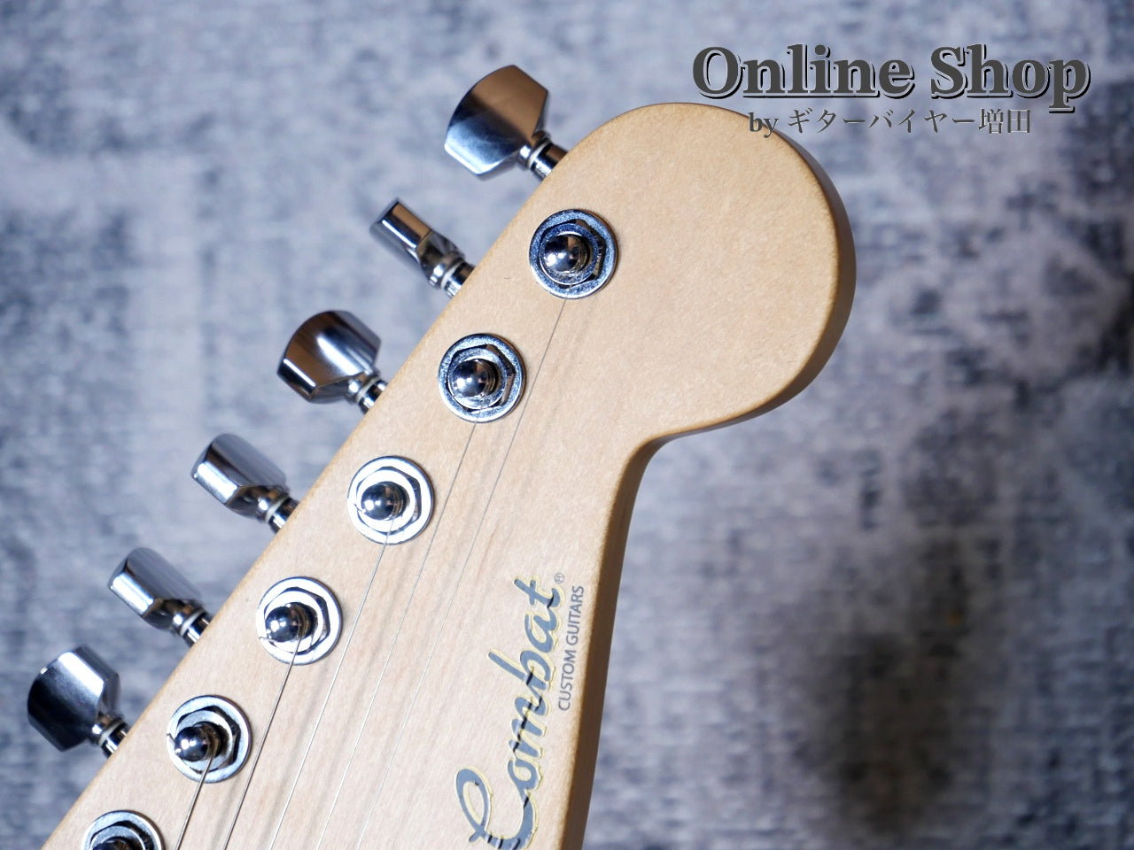 国産ギター・メーカーコンバットによる、カスタム・オーダーにて製作されたSTタイプ!ロッキングトレモロ、ホワイトのEMGピックアップなどハードロックな印象の一品です。