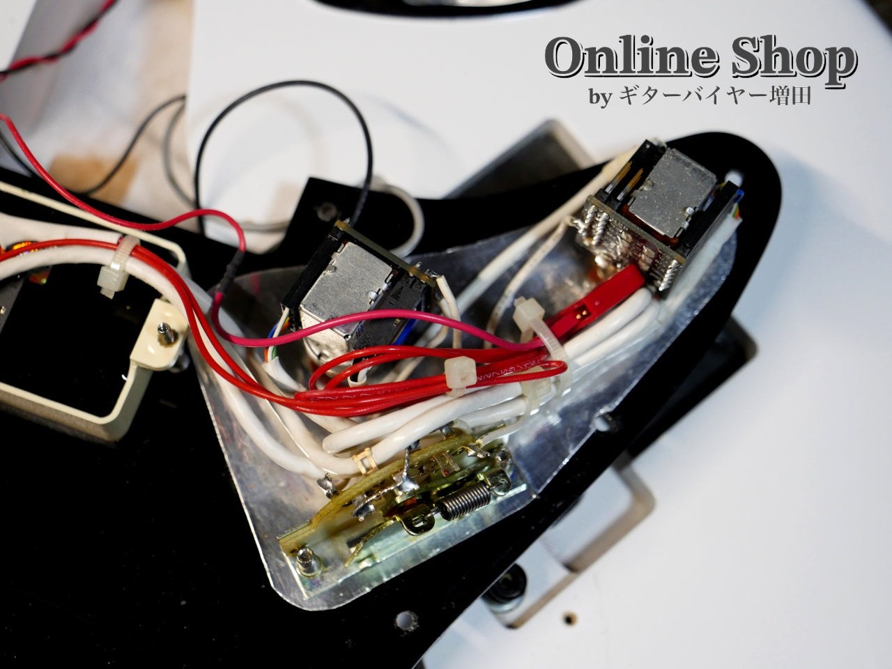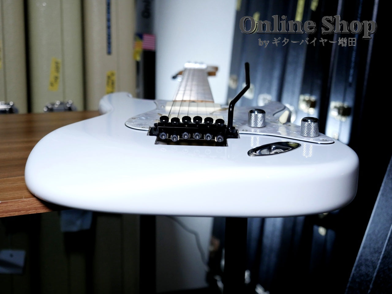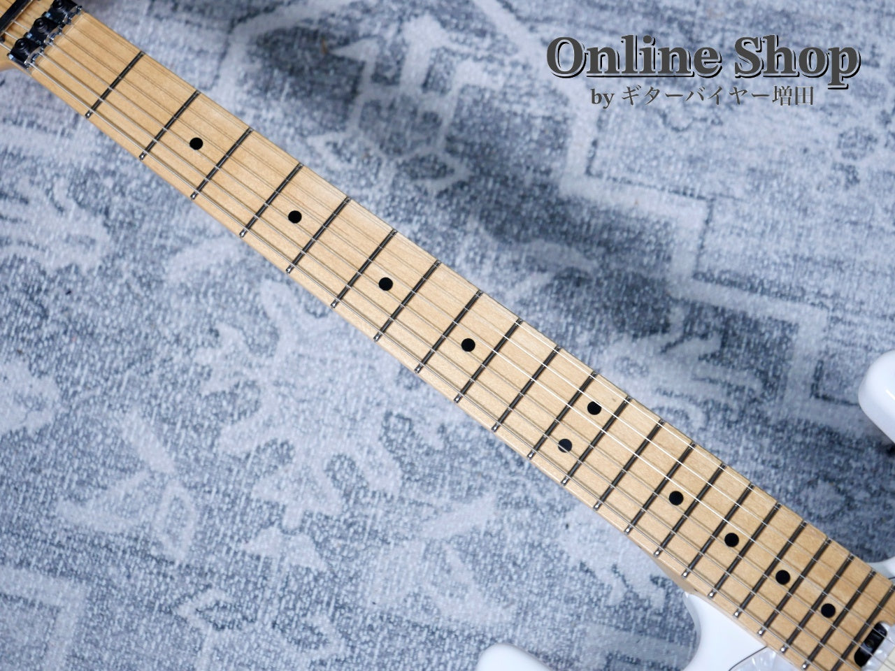 国産ギター・メーカーコンバットによる、カスタム・オーダーにて製作されたSTタイプ!ロッキングトレモロ、ホワイトのEMGピックアップなどハードロックな印象の一品です。