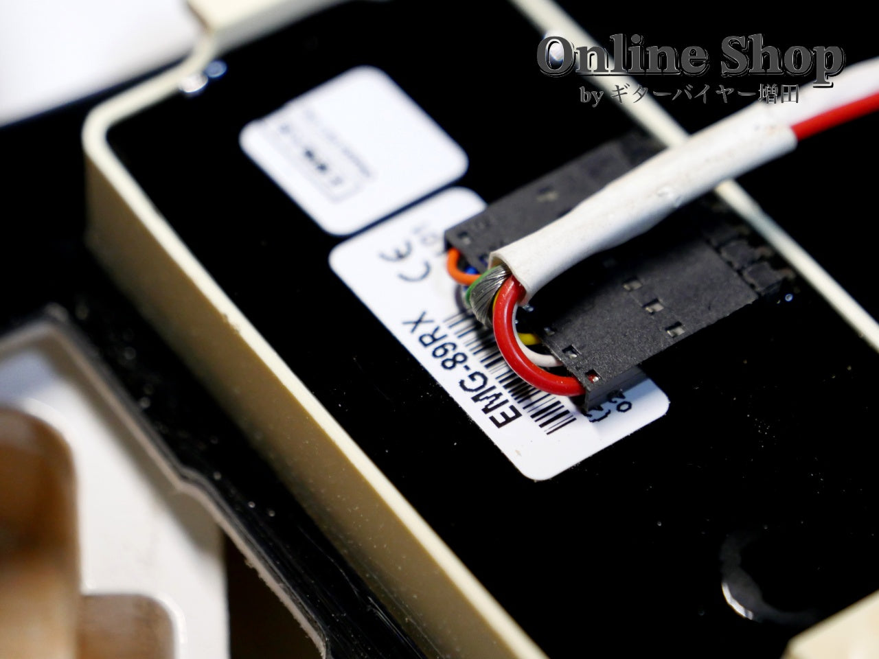 オーダーならではのポイントとして、ボディトップのジャック・プレートの角度が上向きとなっている点、ブリッジのみブラックである点、また、室内での使用を想定してかストラップピンが取り付けられていない点が特徴的です。