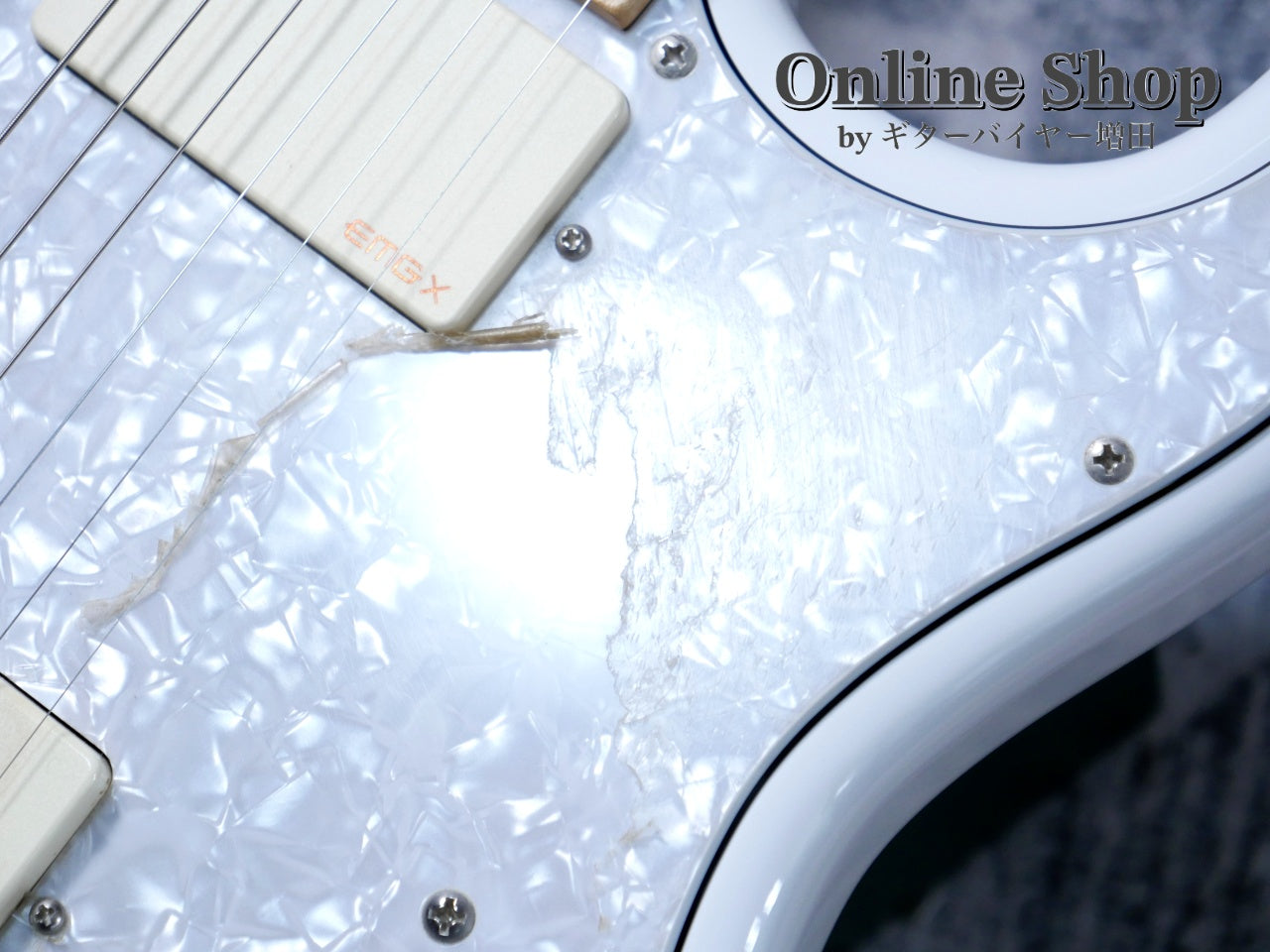 ピックガードは部分的に保護フィルムが残った状態で、ピッキングによるその剥がれやピッキング跡など確認でき、細かな擦り傷など見受けられますが目立つ大きな打痕などなく大切に扱われてきたことが伺えるコンディション。