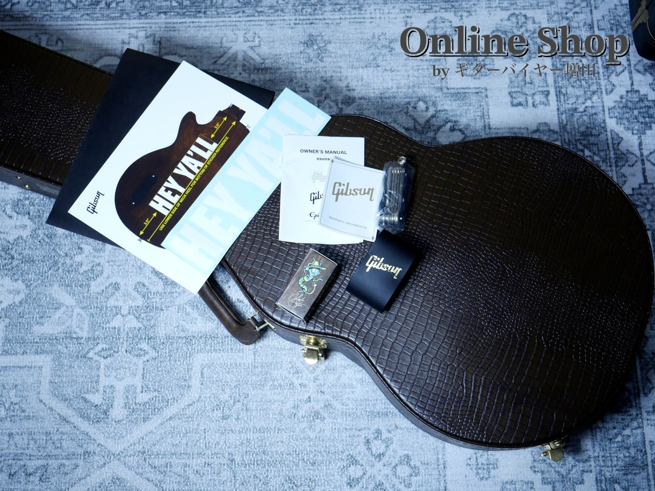 通常カスタムショップの一部モデルに付属するゲーター・スキンケースやスライドバー、アイコニックなステッカーなどの付属品も魅力的。使用感は少なく申し分ないコンディション。氏のファンはもちろん、実用性の高いジュニアをご検討の方にもおすすめの一品です。