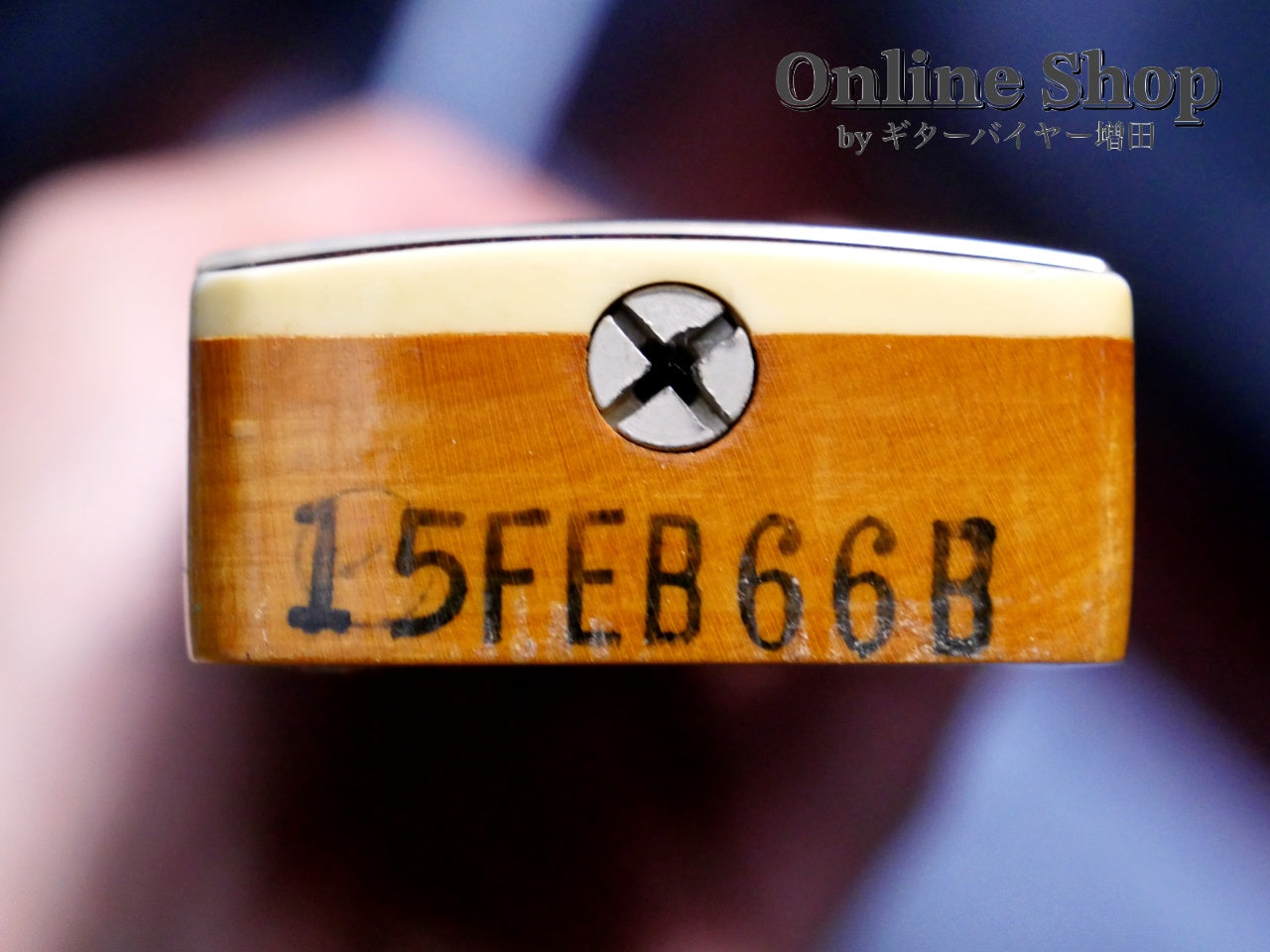 シリアルナンバーレンジ、ネックデイト、ピックアップデイトは'66、各ポットデイトは'65。ケースは汎用のハードケースです。
